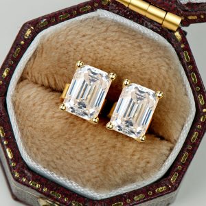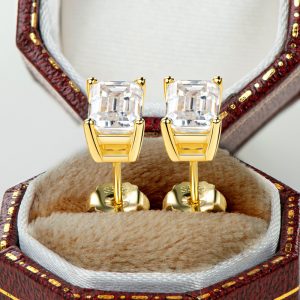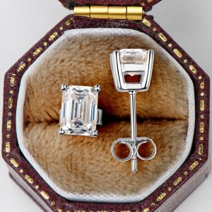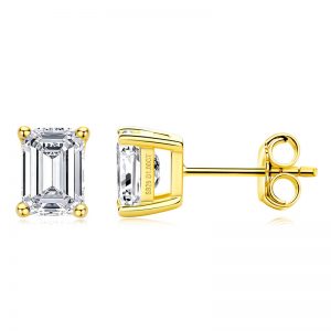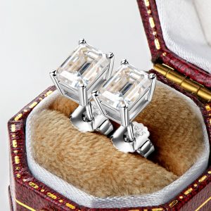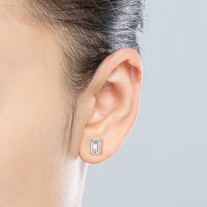 0.5/1 Carat Emerald Cut Moissanite Stud Earrings S925 Silver Classic Four-Prong Stud Earrings
