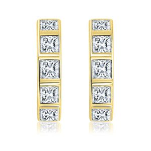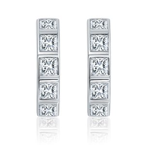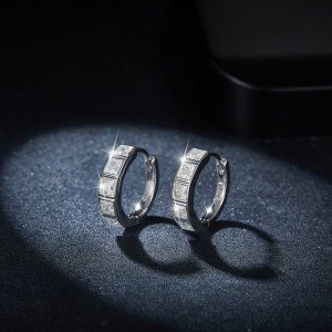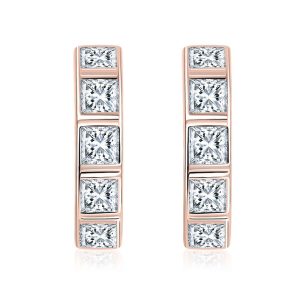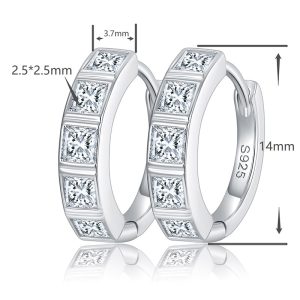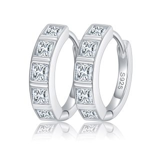 1/10 Carat Princess Cut Moissanite Single Row Pavé Set Huggie Earrings in S925 Silver