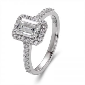 1 Carat Emerald Shape Moissanite Ring Vintage Halo Luxury S925 Sterling Silver Ring