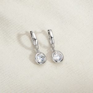 1 Carat Moissanite Earrings Round Brilliant Cut Bezel S925 Sterling Silver Drop Earrings