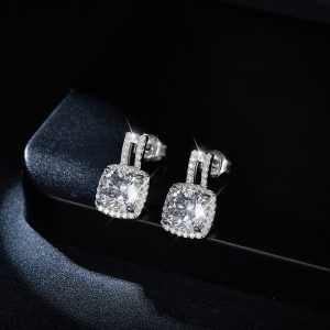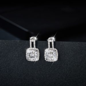 2 Carat Cushion Cut Halo Full Moissanite Stud Earrings in S925 Silver