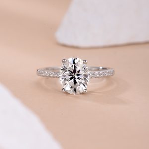 3 Carat 8*10mm Oval Full Moissanite 925 Silver Four-Prong Setting Ladies Ring