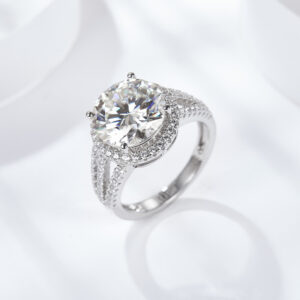 5 Carat Round Cut Moissanite Halo S925 Solitaire Engagement Ring