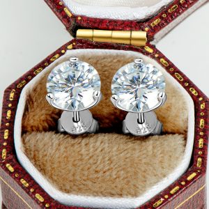Created Moissanite Stud Earrings 1.5 Carat in 925 Silver 3-Prong Setting DEF Colorless