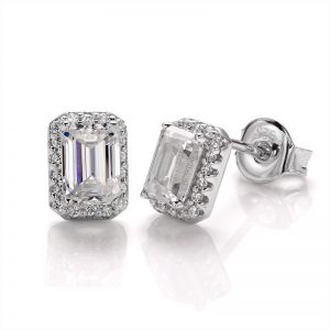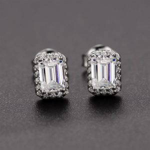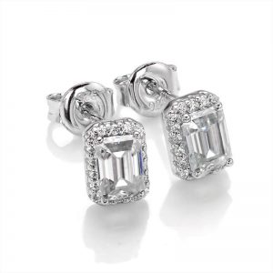 Emerald Cut Moissanite Stud Earrings 3x5mm Women’s Halo Stud Earrings 925 Sterling Silver