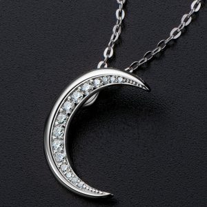 Inlaid Moissanite Crescent Moon Pendant Necklace S925 Sterling Silver Clavicle Necklace