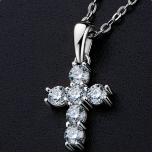 Inlaid Moissanite Cross Pendant Necklace S925 Sterling Silver Necklace