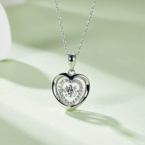 Moissanite Dancing Heart Beating Necklace Heart Shape Halo S925 Sterling Silver Pendant Necklace
