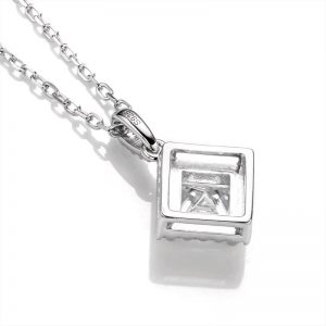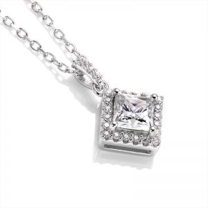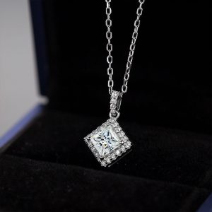Moissanite Necklace Princess Cut 5.5×5.5mm 1 Carat Halo Pendant Necklace 925 Silver