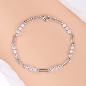 Round Moissanite Bracelet 3.0mm D Color VVS S925 Silver Plated 18K Gold Toggle Clasp Bracelet