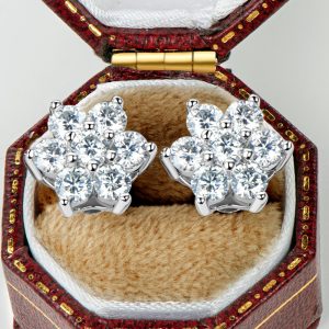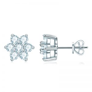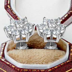 Seven Stars 3.5mm Moissanite Stud Earrings S925 Silver Flower Shaped Simulated Diamonds