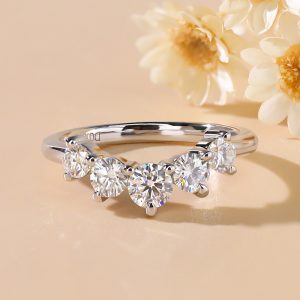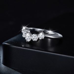 Stacked Style Semi-Circle Pave Ring V-shaped Full Moissanite 925 Silver Plated 18k Gold Ring