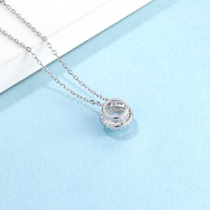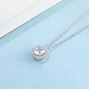Sterling Silver 1 Carat 6.5mm DEF Color VS Moissanite Simulated Diamond Halo Pendant Necklace Luxury Look Jewelry Gift for Women Girls Mom